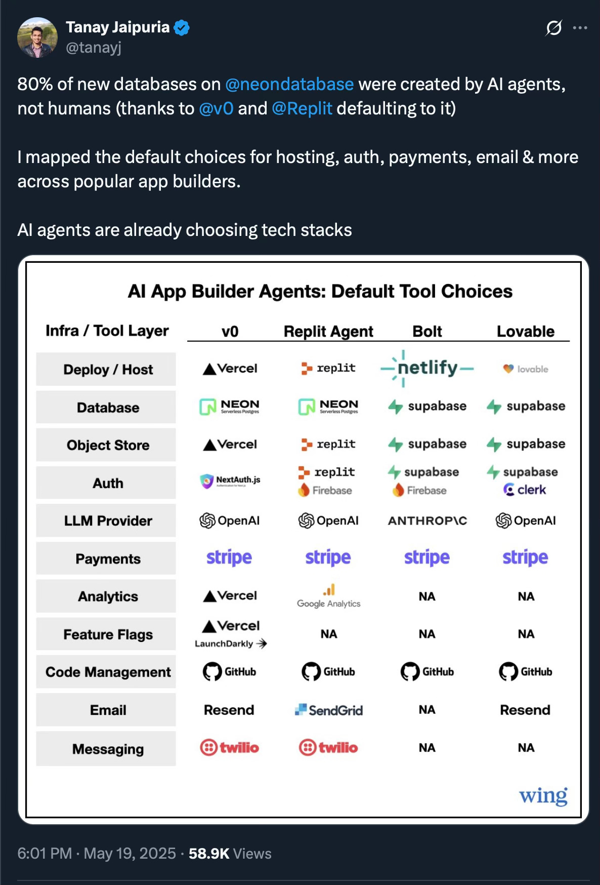#great reminder of how software gets discovered - agents! Also why Neon grew so fast and now being acquired by Databricks for $1B