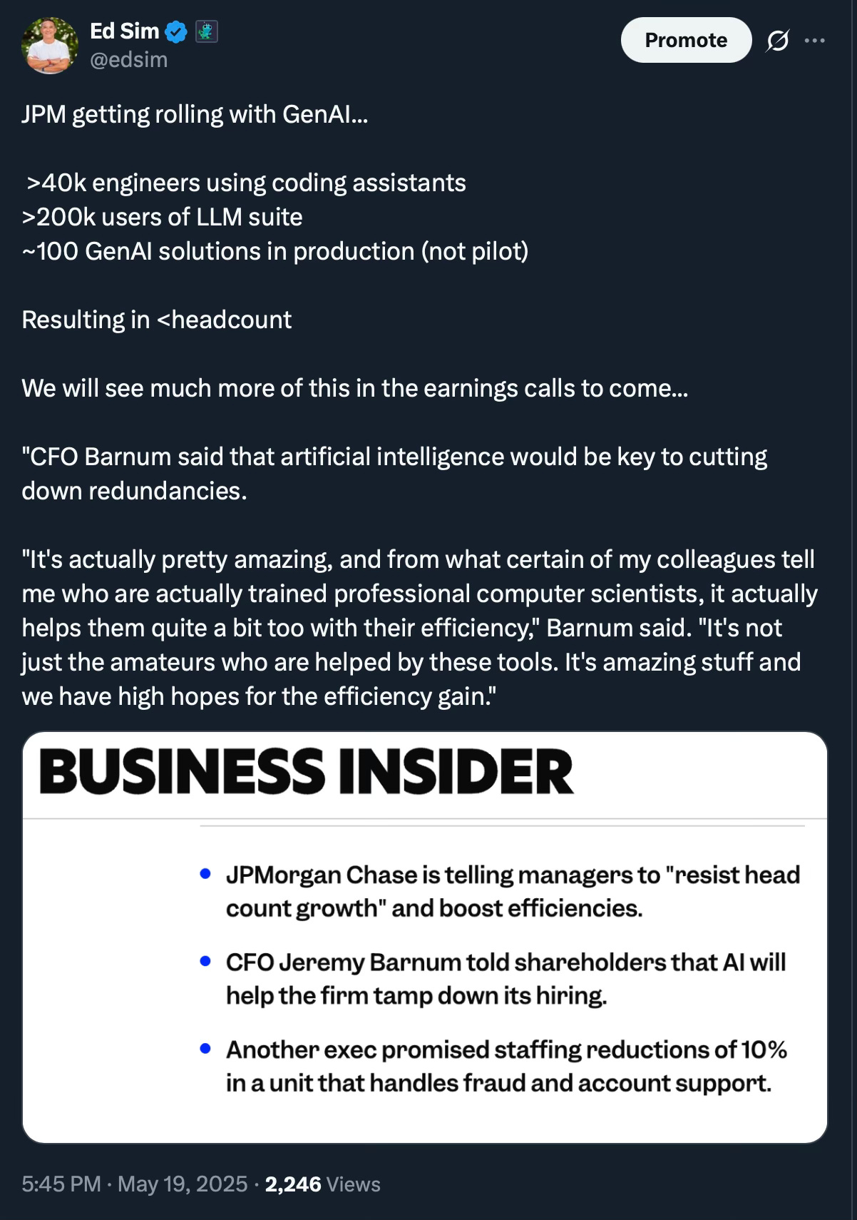#at last year’s JPMorgan Investor day, they talked about GenAI and this year revealed already >100 GenAI applications in production 🤯