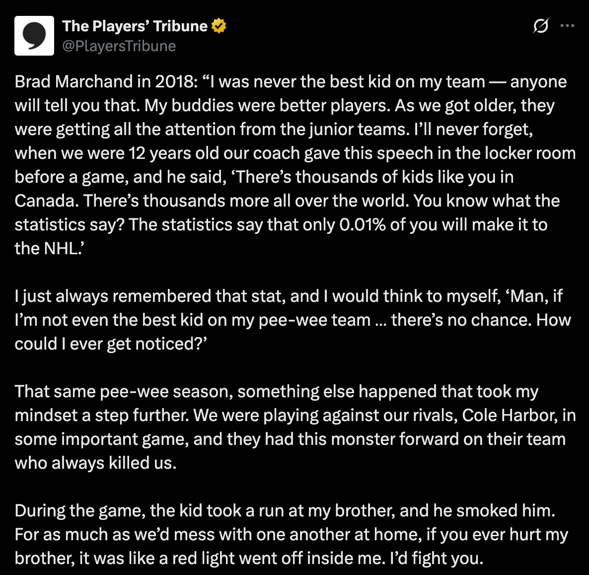 #❤️ this quote from NHLer Brad Marchand who by all accounts should have never made it - 👇🏼 clickthrough for the rest