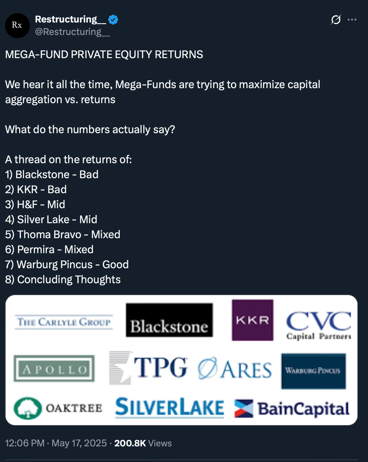 #as VC firms get larger and start bleeding into PE territory, always important to keep in mind how these folks are performing - supposed to be steadier returns with less risk as compared to VC