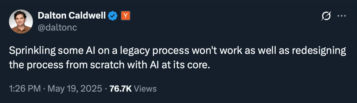 Founders, also think about your product, your workflow - are you bolting on AI or reimagining what is possible?
