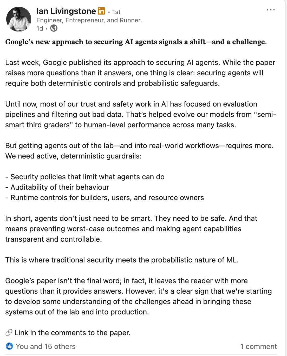 #thoughts on agentic security from Ian Livingstone - Keycard