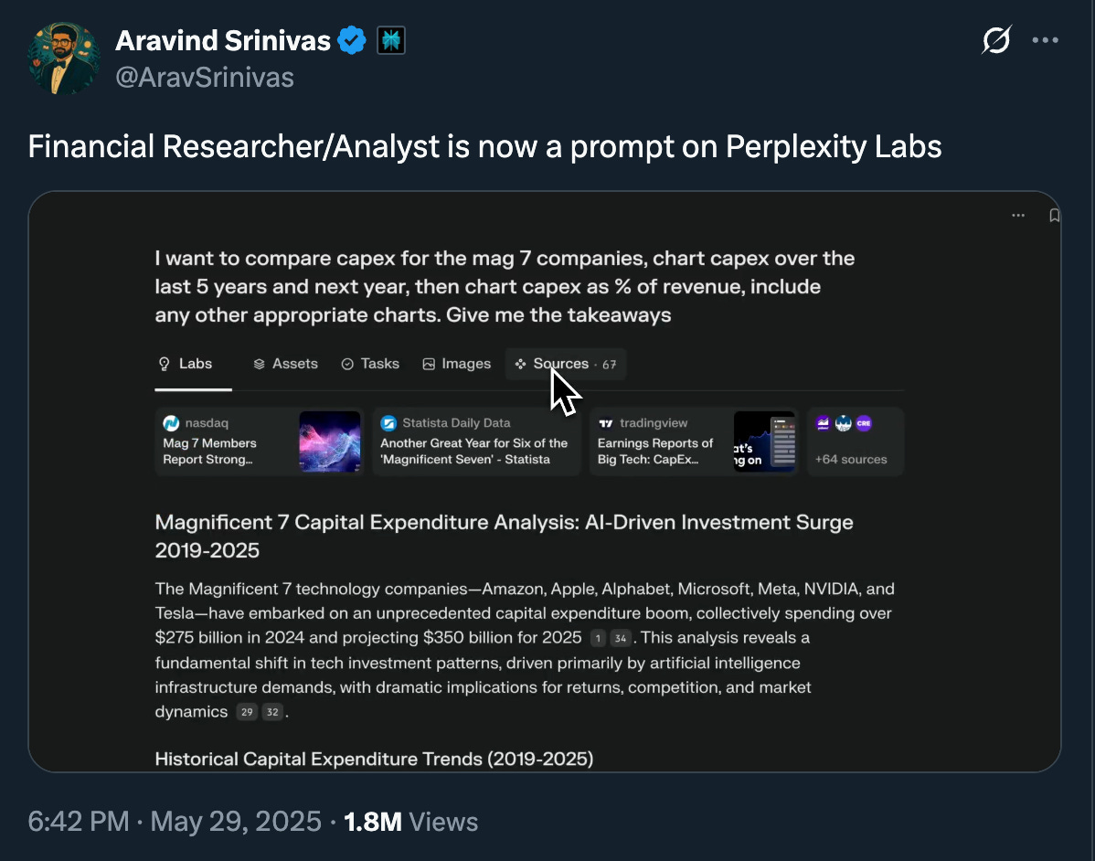 #here’s Perplexity’s new deep research tool - can’t tell if 100% accurate but you get the gist - hours upon hours of work well done with a prompt and can be parallelized - 👇🏻 click and watch