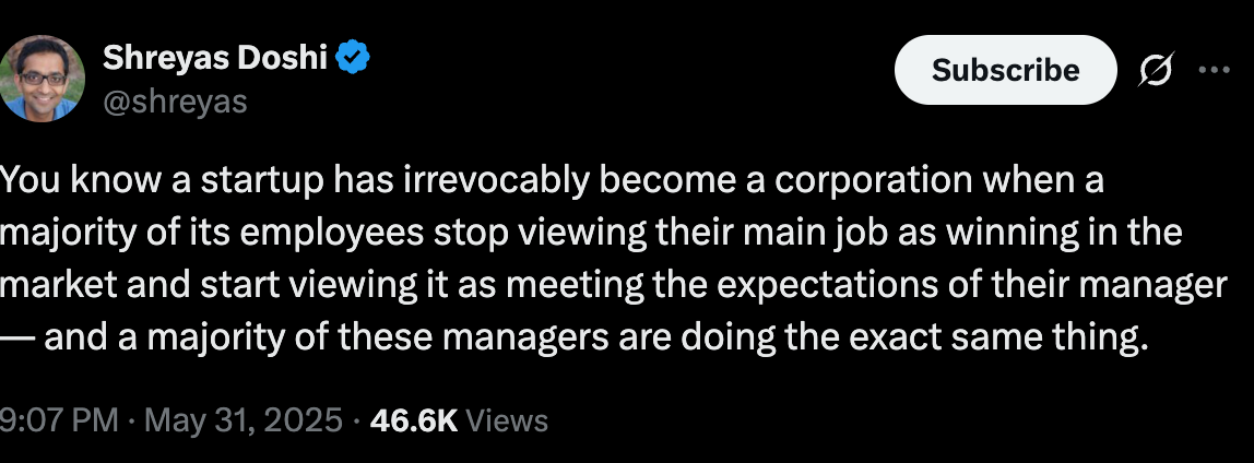 That came into sharp focus during a dinner last week with 8 of our Boldstart founders, a seasoned group, many with prior exits or multiple startups under their belt. When the conversation turned to company building, the only real consensus was this: teams are moving 10x faster than in past eras and staying lean well into revenue scale.