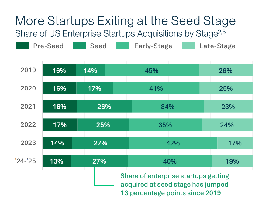 #huge jump - makes sense as % of seed to Series A 📉 and more seed stage startups looking to sell earlier - massive leap from 2019 and 2020…(from SVB State of Enterprise Report)