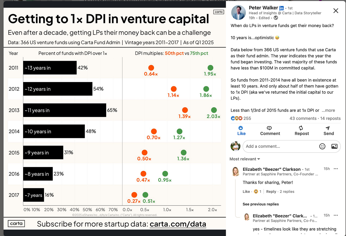 #speaking of liquidity, not surprising data from Peter Walker - timeline to return 1x getting longer