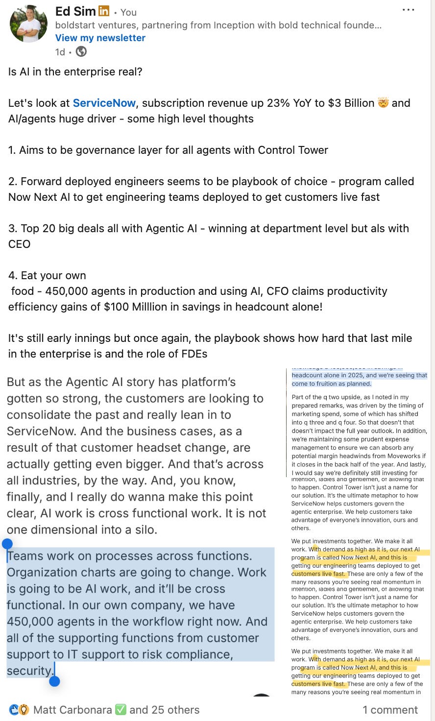 Zooming out, ServiceNow also highlighted this need for a governance layer or Control Tower as it continued to ramp sales powered by AI 👇🏻 - click through for the specific highlighted comments from the earnings call.