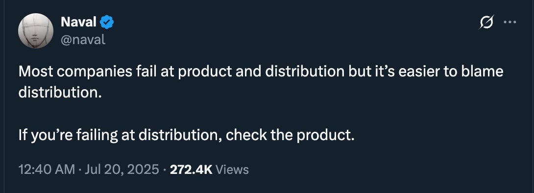#more often than not it’s product but so many examples of best product doesn’t win with distribution…