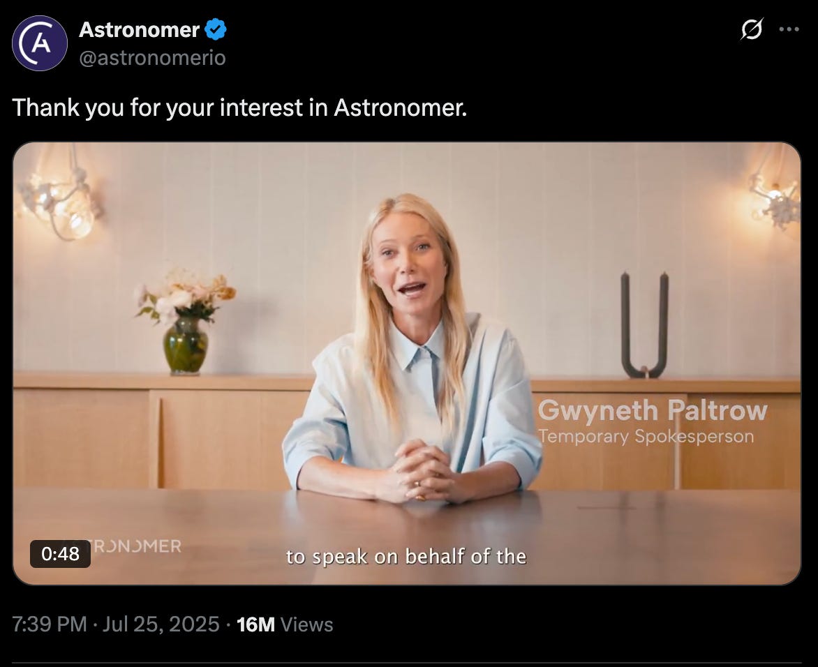 #👏🏼 Astronomer - what a move to capitalize well, you know, on the recognition they never wanted - hiring Coldplay’s ex-wife to speak even better