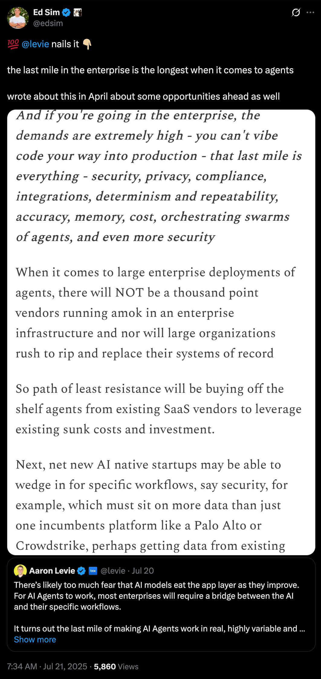 #worth repeating - the last mile in the enterprise for agents is the longest - here’s Aaron chiming in