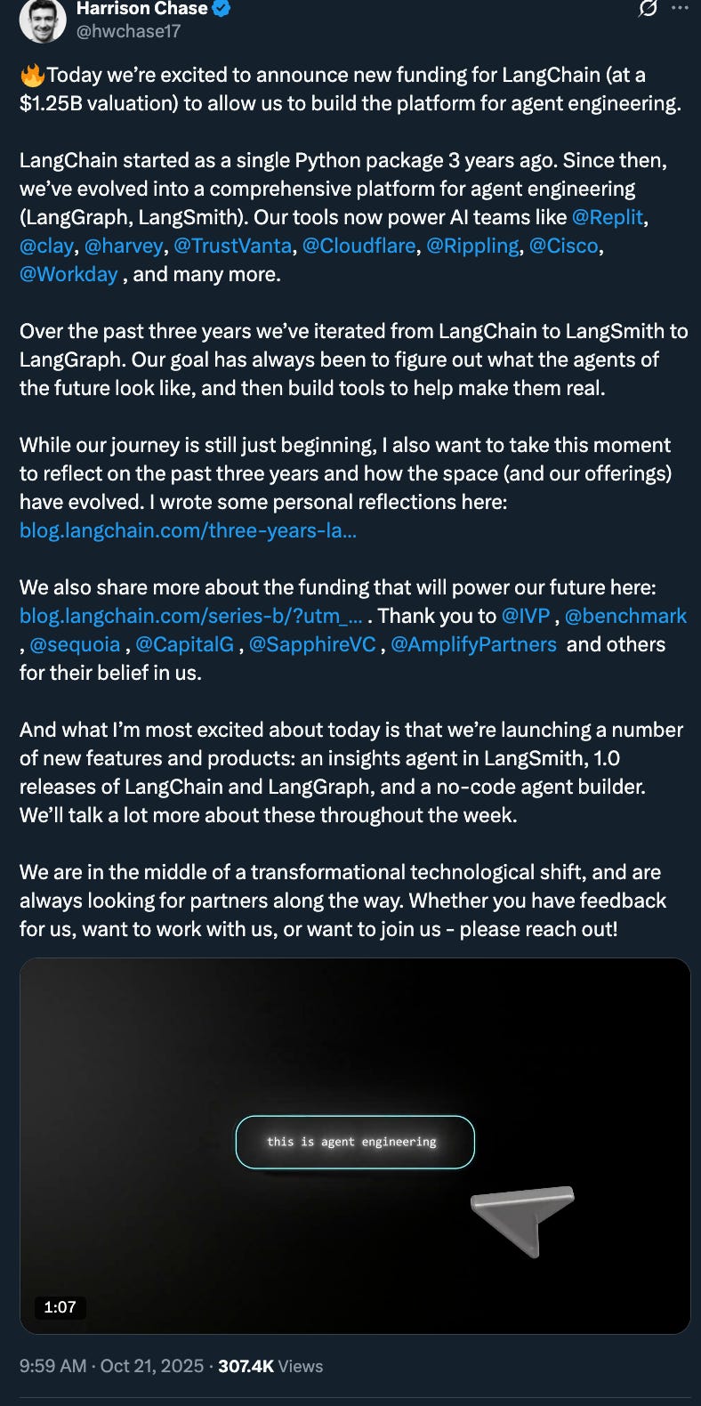 #agent platforms on 🔥 as Langchain raises $125M at $1.25B on heels of n8n raising at $2.5B