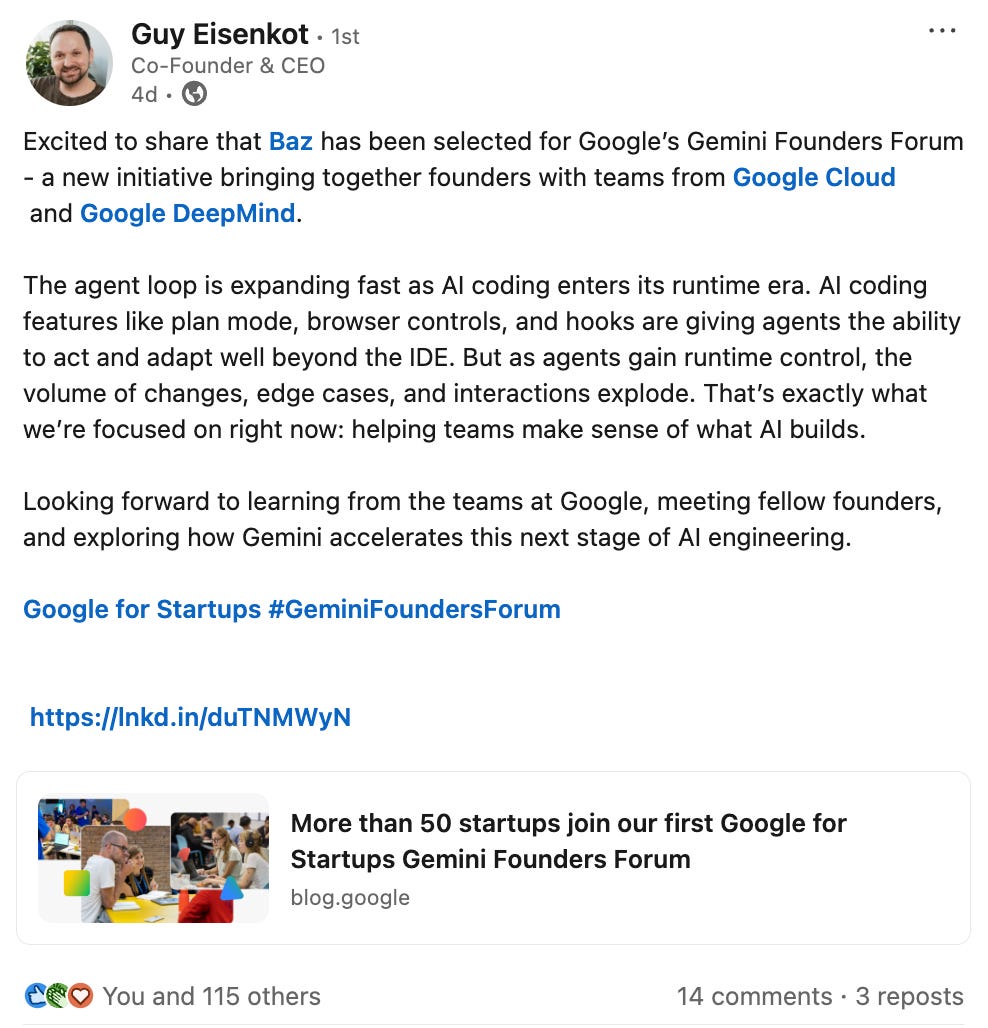 #congrats Baz, a portfolio co, and great list of top AI startups!