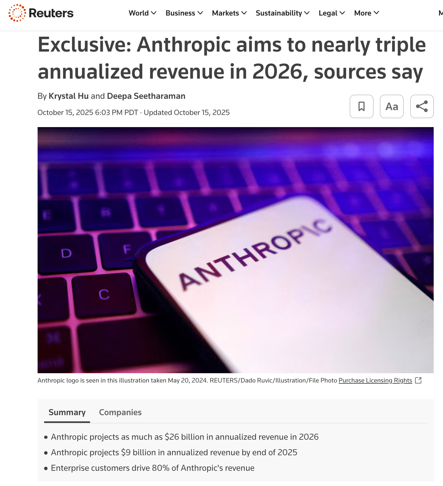 #Anthropic continues to 📈 and 80% of revenue from enterprises!