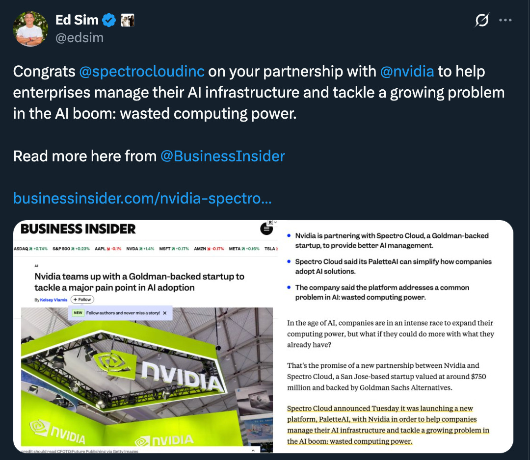 #🔥 up for this partnership betweent portfolio co Spectro Cloud and Nvidia