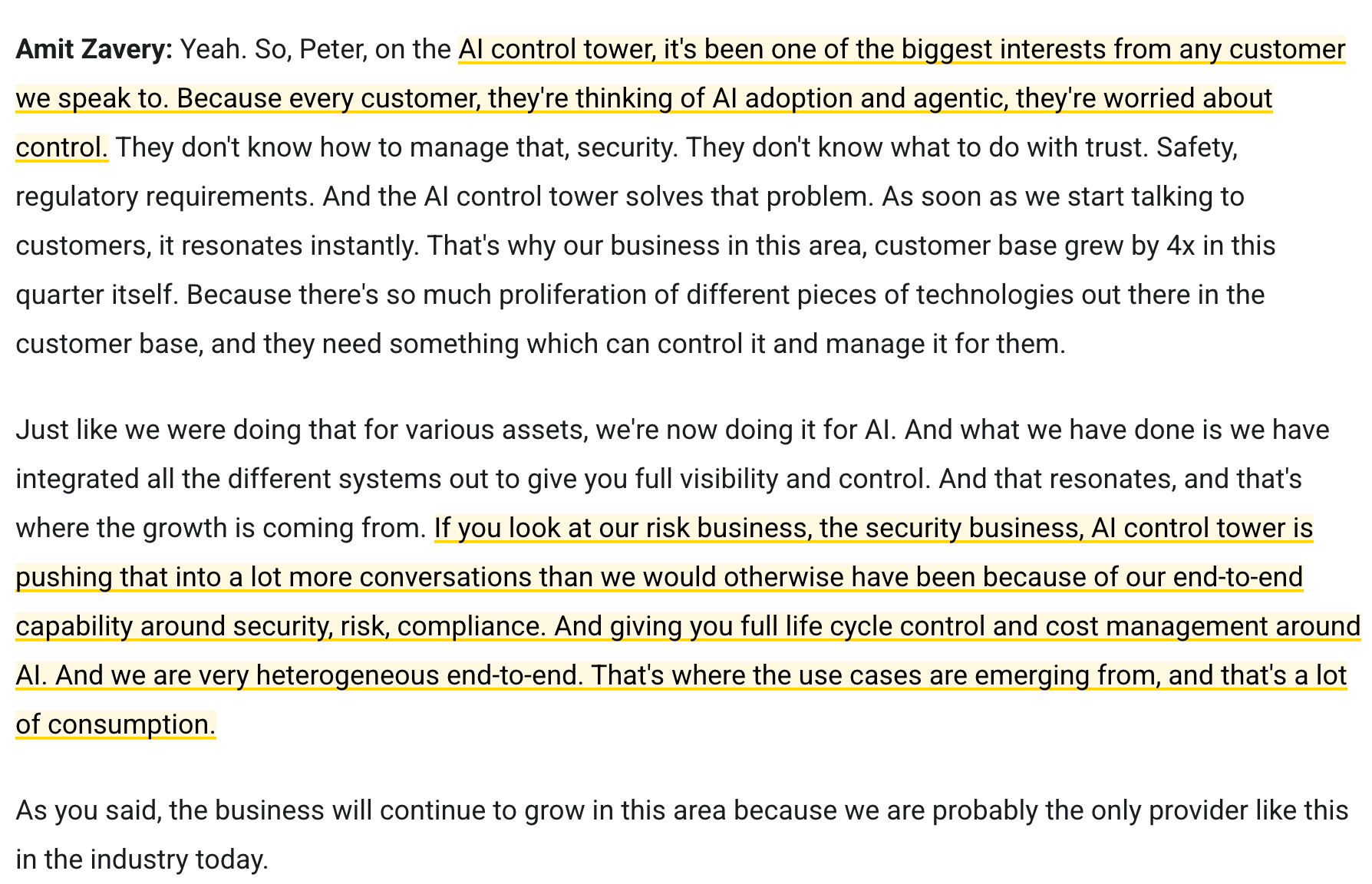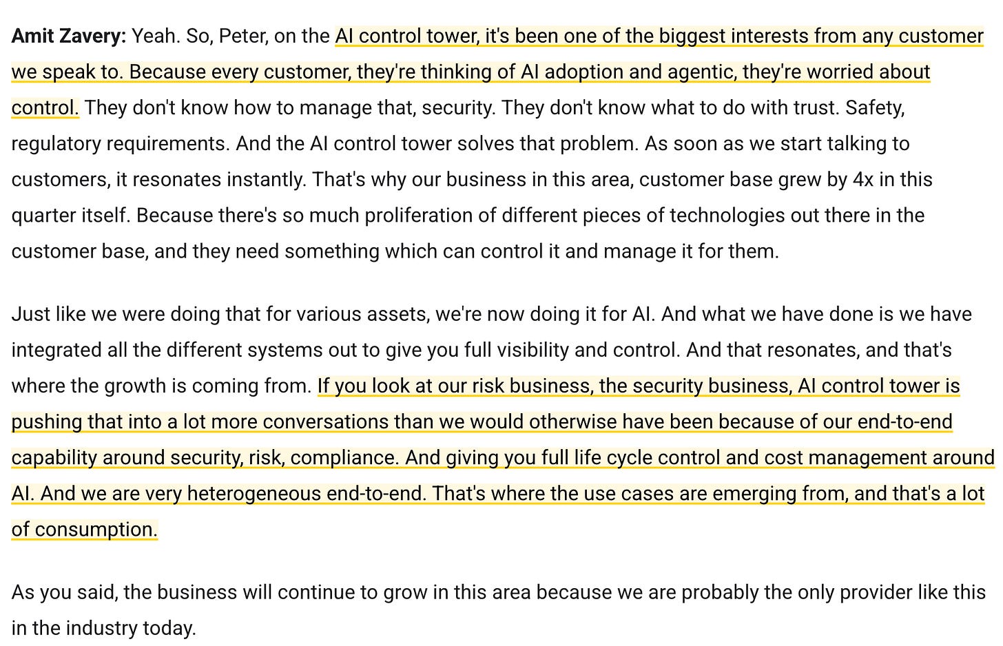 Finally, there is no AI or agentic in the enterprise at scale without security and guardrails - control tower growing super fast for ServiceNow.