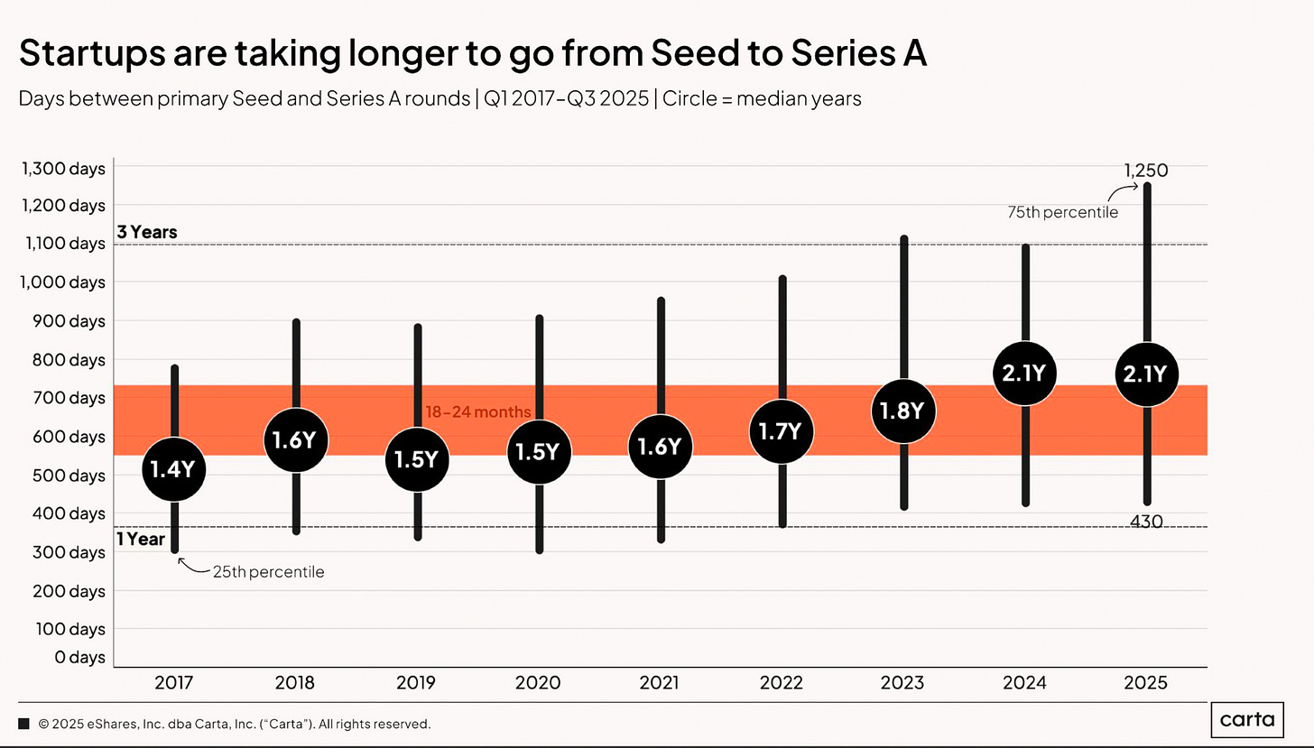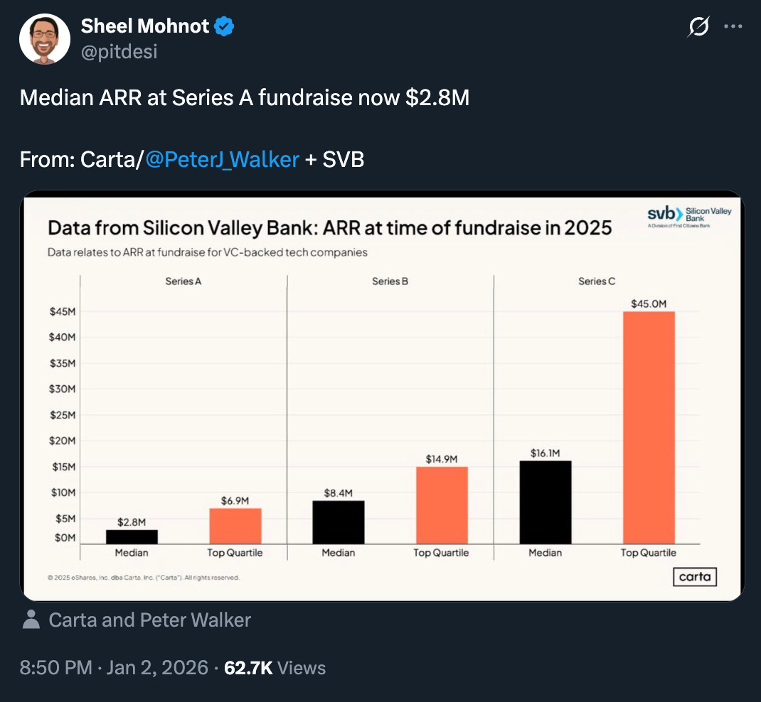 #Peter Walker has the definitive data set for startups for 2025 - a few interesting charts for those founders going from Inception/Seed to A - this is median and as FYI many of my port cos had minimal ARR and raised outsized A rounds