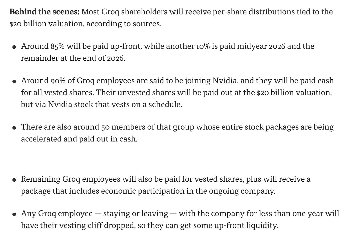 #lots of questions around the Nvidia Groq $20B license/acquihire on who gets paid - Dan Primack from Axios did some digging and the answer is “everyone gets paid alot!”