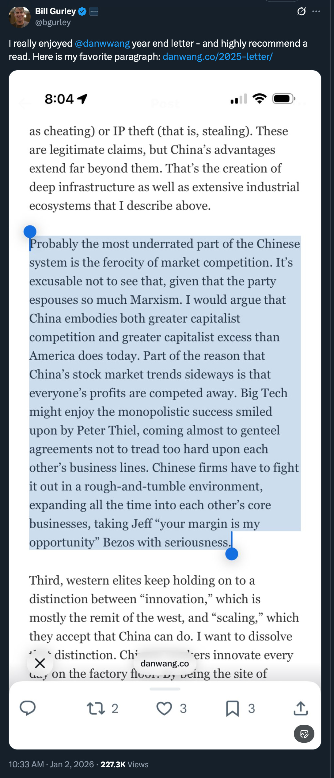 #in 2026, beware of China, government backed VC funds for AI and hard tech, IPOs of AI companies giving them lots of cash, and insane cutthroat competitive dynamics - must read letter 👇🏻