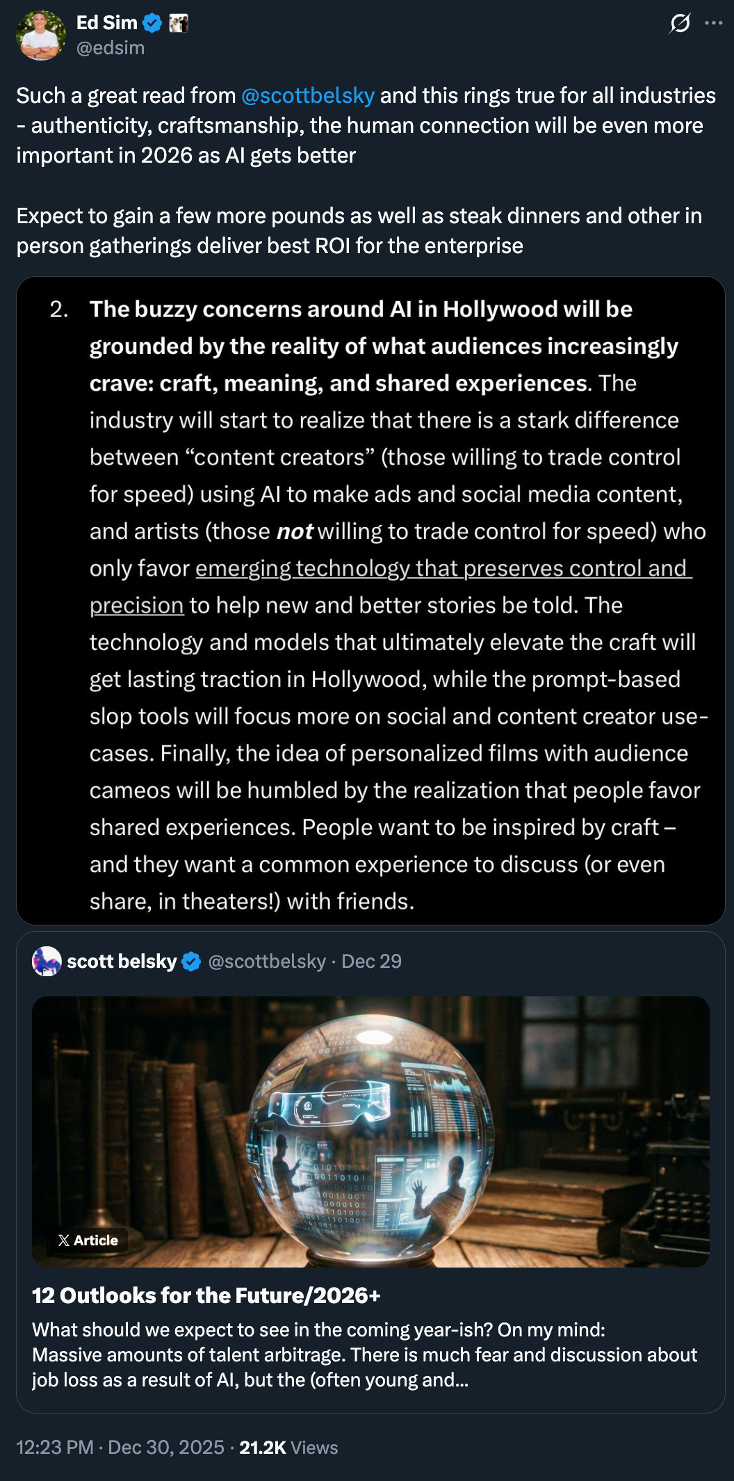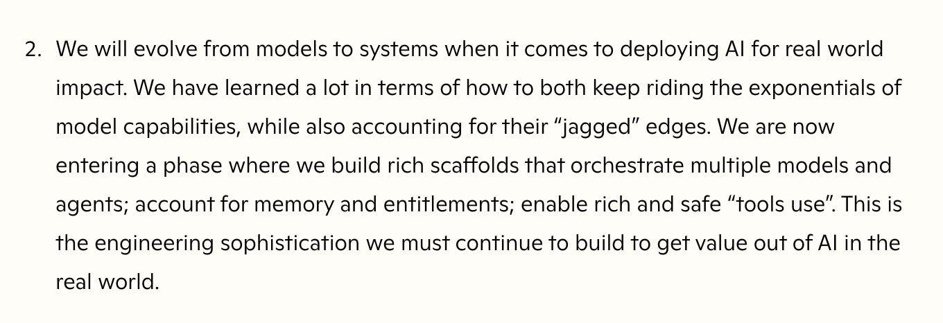 In Satya Nadella’s year-end reflection he muses on what’s needed - rich scaffolds that orchestrate multiple models and agents; account for memory and entitlements;…(it’s short and read his musings here)