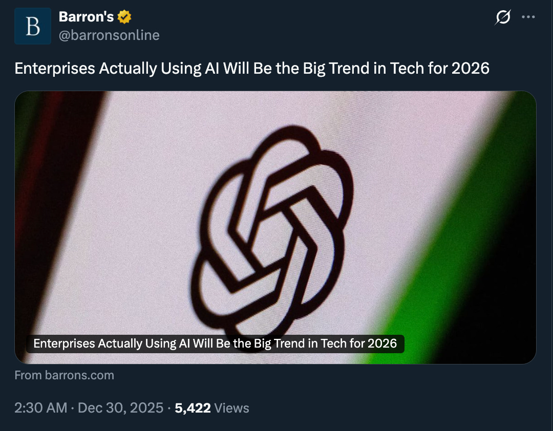 Going to be an epic 2026 as agentic workflows move beyond just coding to deliver more value in the enterprise...but lots to build 🏗️ and a word of caution