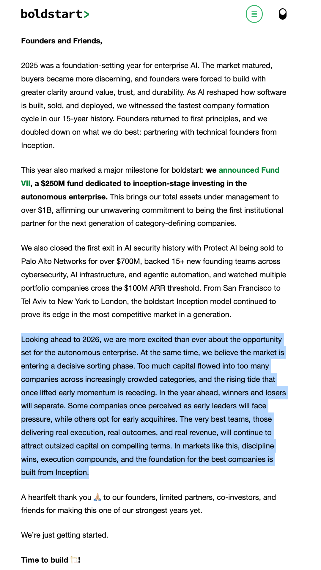 #easier said than done - my prediction for 2026 sounds obvious but much harder to execute - also click through for the full recap of what my fund boldstart ventures was up to in 2025!