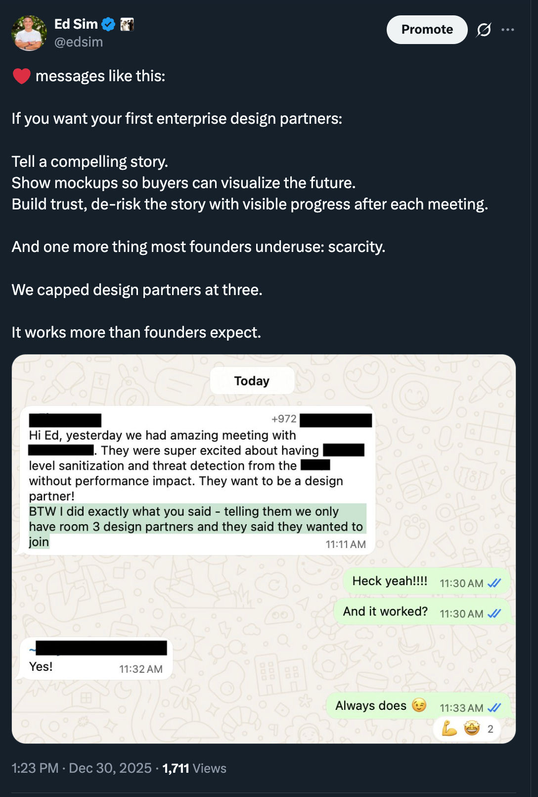 #want more enterprise design partners👇🏻 - some tried and true methods I’ve learned over many investments and decades 👴🏻