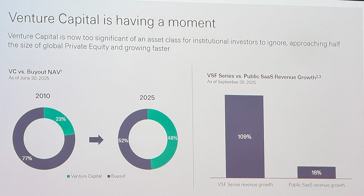 The power law is accelerating. Capital is concentrating into a tiny set of companies. The mood in the room was equal parts euphoria and quiet panic. AI excitement is real. Liquidity anxiety is real. LPs are rotating toward deep tech and Physical AI. The gap between AI-native winners and legacy software is widening fast. If your product can be reduced to an AI skill, the market assumes you are replaceable.